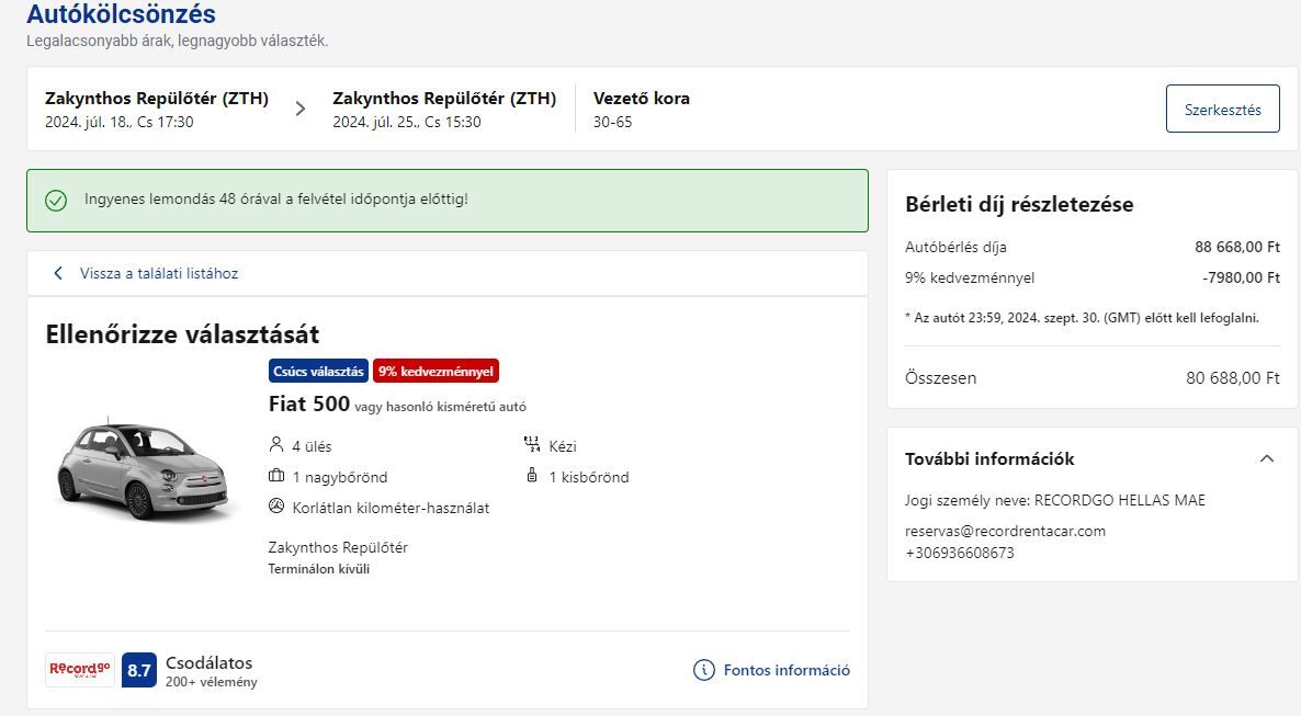 Ezen az oldalon bedobott a ryanair autókölcsönzős felületre, ahol egész jó áron vannak autók (a szállásomnál is rákérdeztem, de attól is olcsóbban). [kép]Na itt két kérdés merült fel: