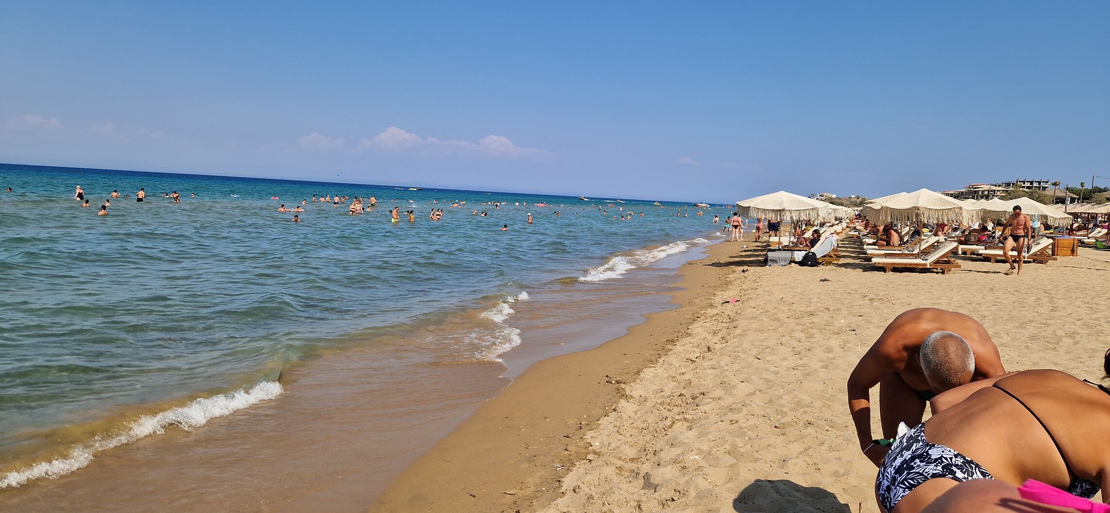 Még strandon egy kajálás 35€ környéke (és lutri), ugyanez Alykanas-ba (pepe gyros) 15€ este beülősnél.