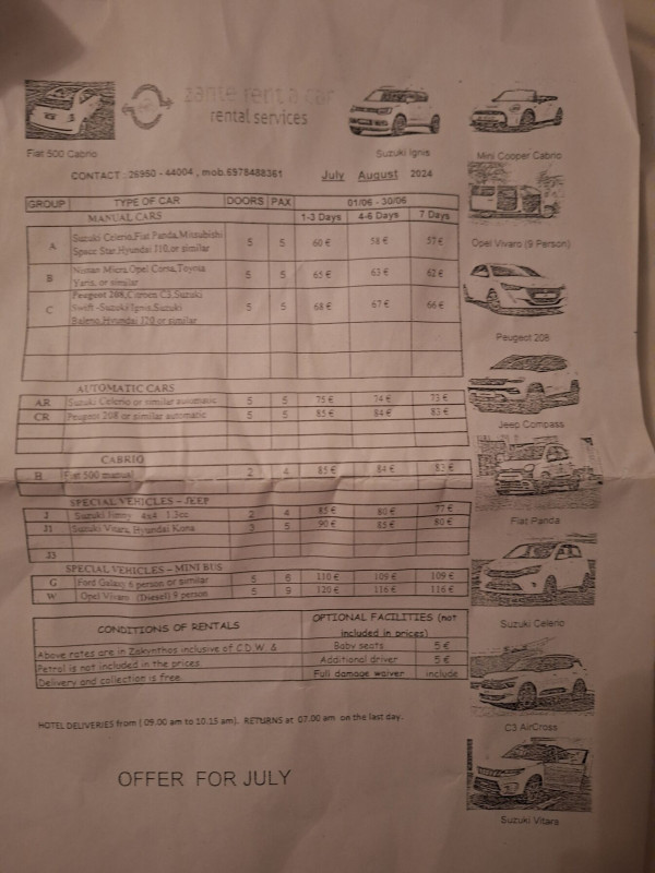 Zante Renta Car, IBUSZ intézte. 1 napra 68 euró normál autók közül a legjobb.