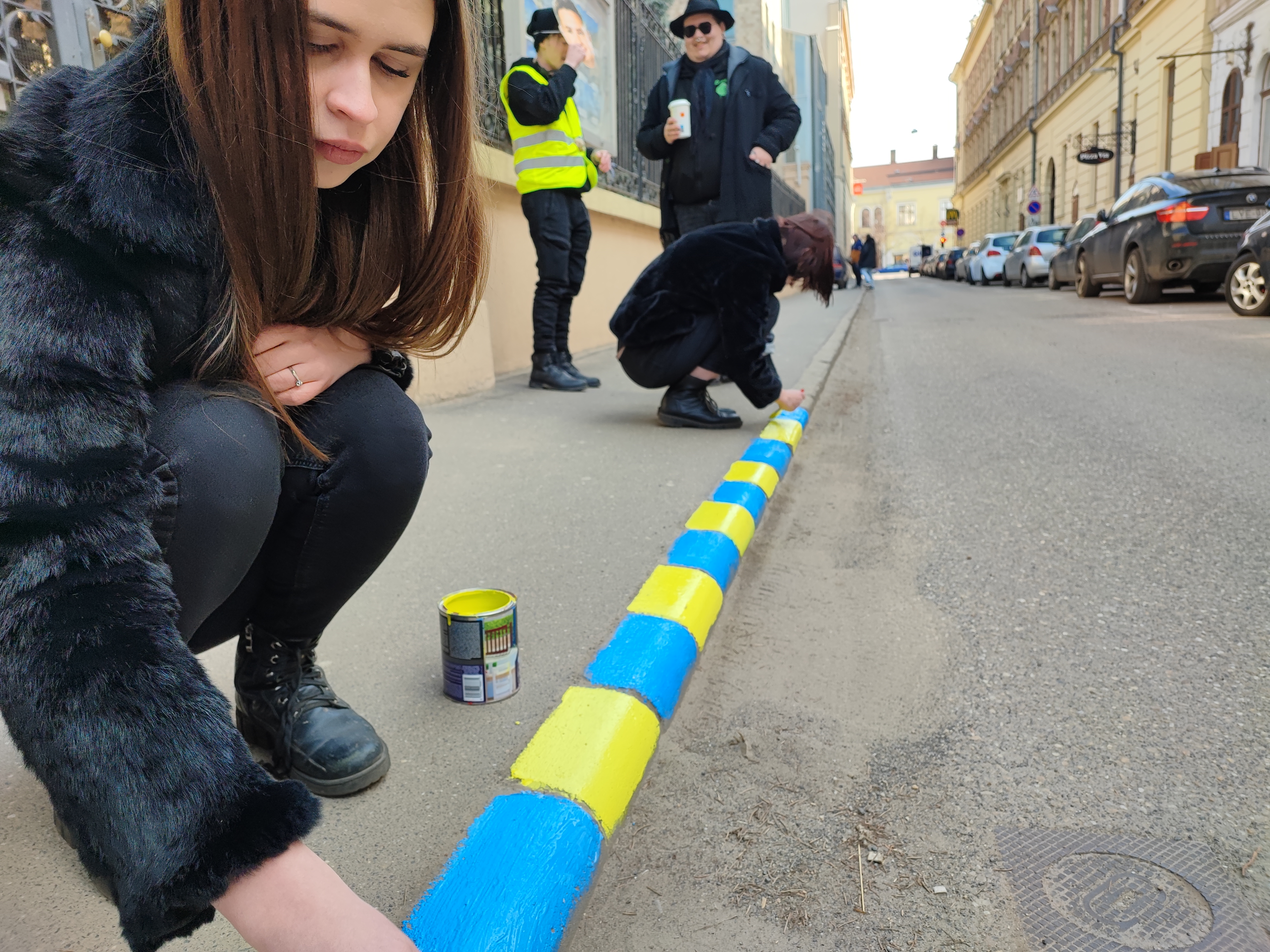 Az ukrán zászló színeit festették fel a debreceni orosz konzulátusnál, rájuk hívták a rendőröket
