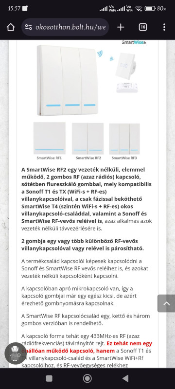 A SmartWise RF2 rádiós, vezeték nélküli kapcsoló most akkor jó hozzá?