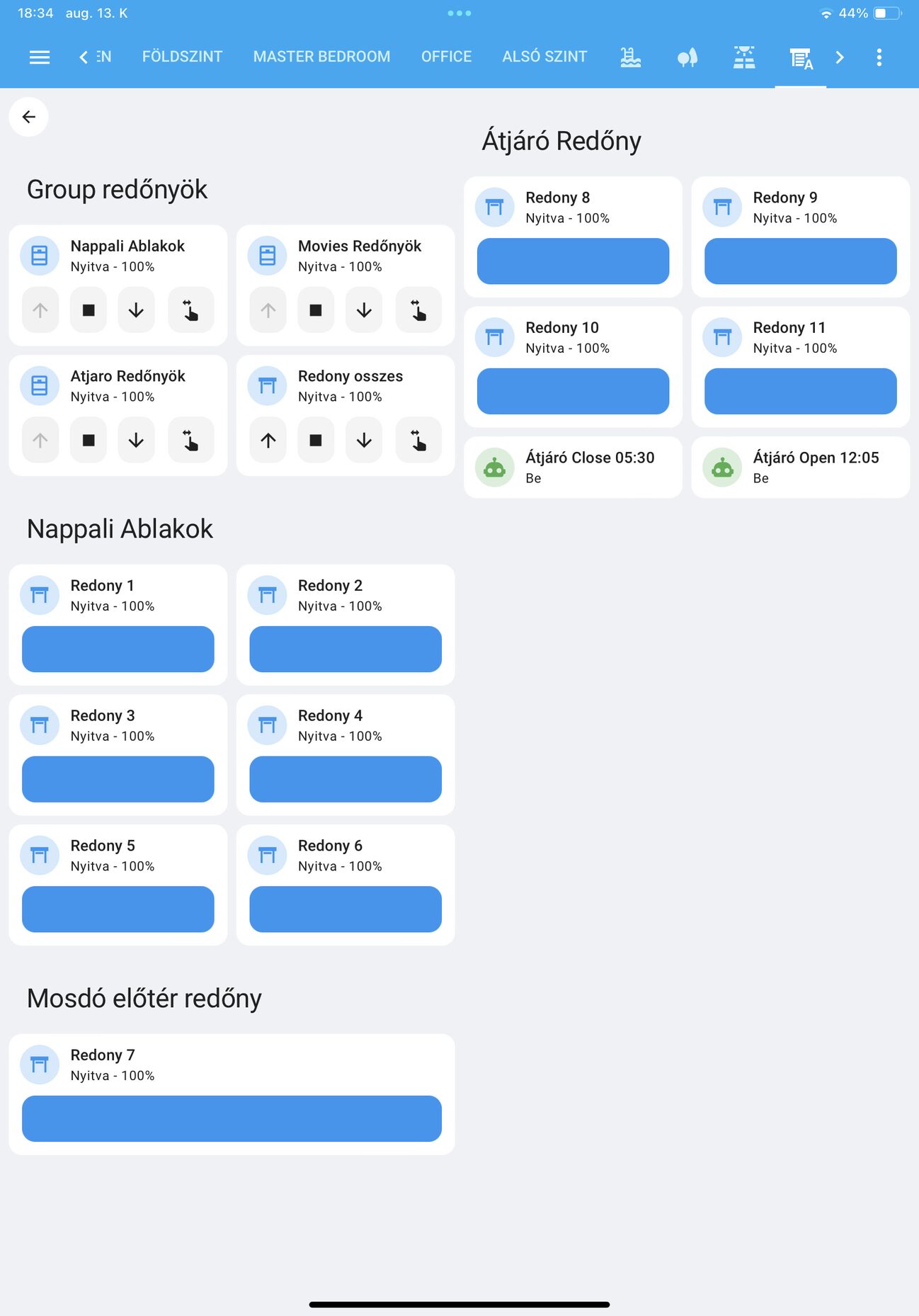 Na sikerült beszerezni egy broadlinke rm4 prot. Ezzel tökéletes a redőny vezérlés. Most már csak valami jó felület kellene a HAba. Van valamilyen tippetek mivel lehet 7 redőnyt fel,le, stop gombjait kirakni a dashboardra hogy ne foglaljon sok helyet de átláthato legyen?