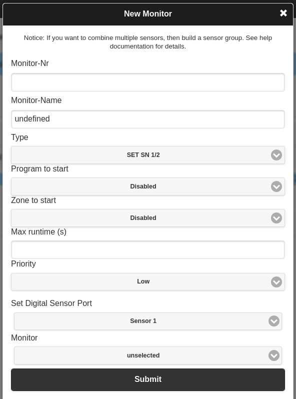 Tehat eloszor letrehozol egy szenzort, aminek ugye az erteke lehet 0 vagy 1. Aztan letrehozol egy monitort aminek azt mondod, hogy a "value to deactivate" legyen 1 (tehat ha vizes a fold) a "value to activate" legyen 0 (tehat ha szaraz a fold) A "program to start" nal beallitod, melyik programot akarod felfuggeszteni/ujra elinditani az adott szenzorral.