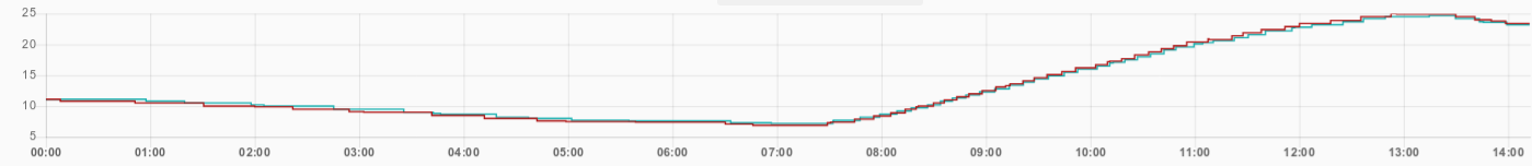Még megnyugtatóbb, h azóta figyelve a gyanúsnak tűnt szenzor is csak max 2 tized eltérést mutat egy mellérakott másikhoz képest - és az is főként azért, mert nem pont ugyanakkor jelentik le az állapotukat (ezzel mondjuk legyél tisztában, h csak 15-20 percenként küldenek adatot, ami nem süríthető. Helyiségmonitorozásra persze tökéletesen elég így, és cserébe valószínűleg helytálló az egy éves elemélettartam - de mondjuk fűtés/hűtésvezérlésre persze nem lennének alkalmasak)