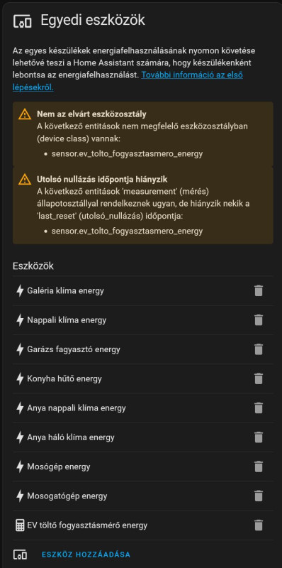 A Gosund EP-2 -t próbaképp feltettem a Tuya-ba, és integráltam. A Tuyában nem mutatja az energia mezőt, így az integráción sem jön át. A feszültség és az áram valamint a teljesítmény látható. A teljesítménynek valamiért a 10x-ese jön (???) Az energia panel eszköz hozzáadásának mindenképpen energia mező kellene, hiába hoztam létre a teljesítmény Riemann integráljaként a fogyasztott energiát, a beállítás segéd entitást nem fogad el...
