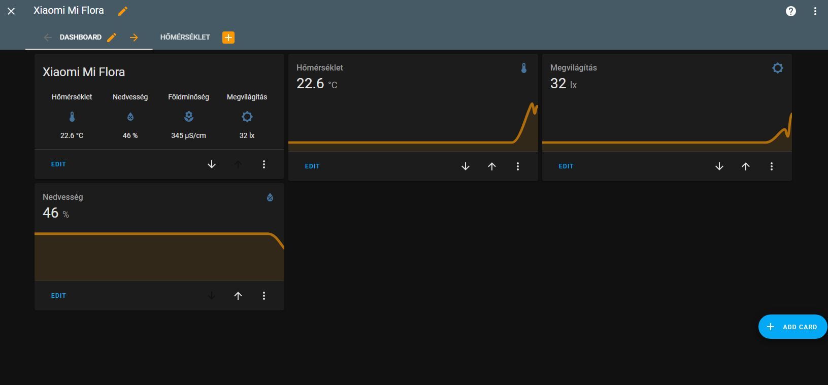 Jelenleg sajnos csak egy Mi Flora van kéznél, azzal próbáltam ki.Viszont első blikkre nagyon ergyák ezek a HA-s widget-ek. Pl. szerettem volna megnézni a grafikonon, hogy adott időpillanatban milyen hőmérsékletet rögzített a Flora-de hiába mozgatom kurzort gráfon, vagy egyáltalán vagy csak lassan jeleníti meg az adatokat. Ez ilyen szar vagy esetleg másik widget-el/theme-el ez normalizálódik?
