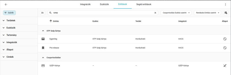 Ennek az entitásnak ("sensor.szep_kartya") nincs egyedi azonosítója, ezért a beállításait nem lehet kezelni a felhasználói felületről. További részletekért tekintse meg a dokumentáció oldalt.