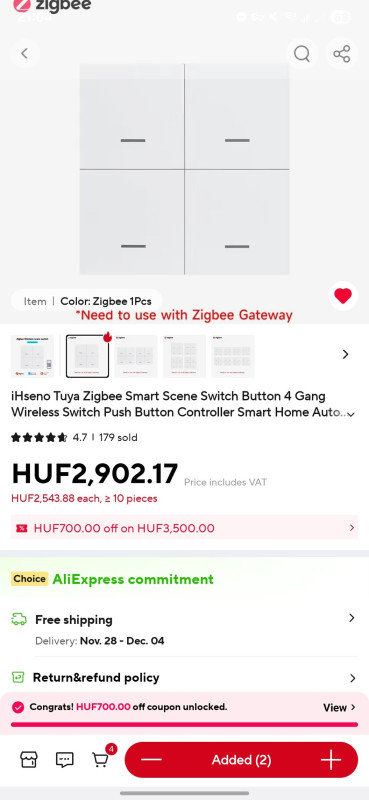 , de akkor is tetszik ez a "hobbi", eljutok, ameddig eljutok.És jönnék is egy kérdéssel. Van nekem ez a problémám ezzel a 2 zigbee-s hőmérséklet és páratartalom érzékelővel, hogy a Moes gateway segítségével nem tudom hozzáadni. Aliexpress dispute folyamatban: először elutasítva, majd refund kiajánlva, miután látták a videót, hogy hibára fut az eszköz hozzáadása. Így rendeltem egy dongle-t is (úton van), abban bízva, hogy azzal majd hozzá tudom adni közvetlenül HA-hoz.