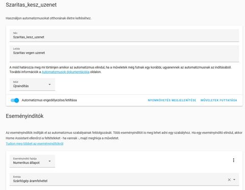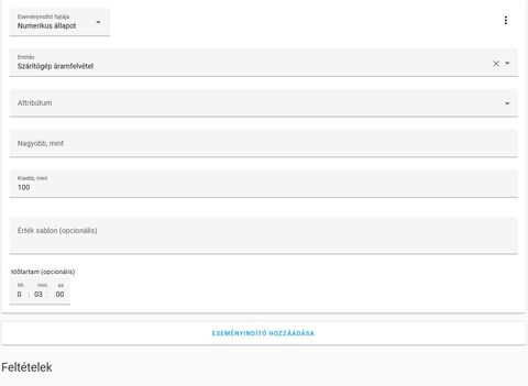 "A Plug S WiFi-s okoskonnektor nem csak méri az áramfogyasztást, és statisztikát ad az áramfogyasztásról, de riasztást is képes küldeni, ha az áramfelvétel egy megadott ideig az általad beállított határ alá esik. Így értesítést tud küldeni, például ha az okoskonnektorba dugott mosógép fogyasztása meghatározott ideig visszaesik, azaz készen van a mosás, vagy ha a konnektorba dugott hűtő egy órán át nem vesz fel áramot, azaz vélhetően elromlott és leállt a hűtő!"Ezt az opciót a shelly appban hol találom? Attúrtam, de nekem nincs meg.