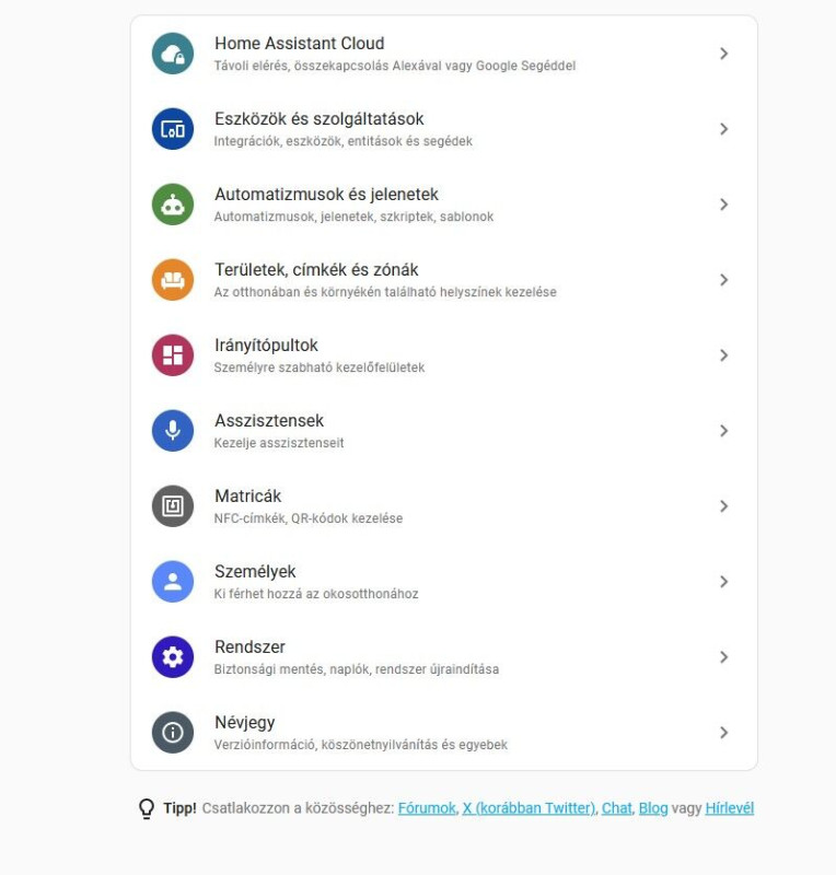 Már egy órája túrom a netet. Nálam nincs ott a bővítmény menü a home assistantban. Azt hogyan tudom megoldani, hogy ott legyen?