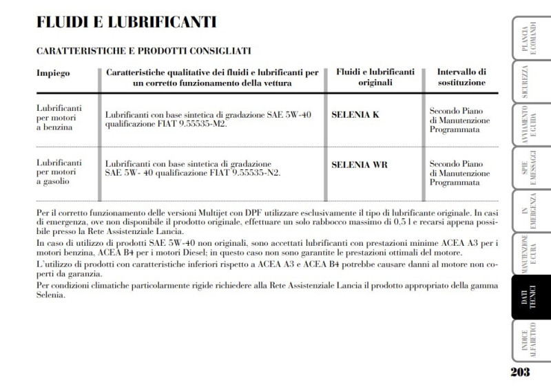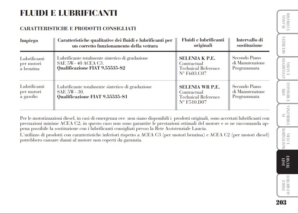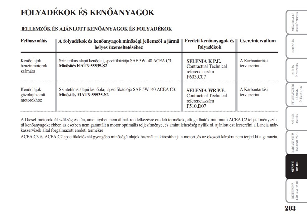 A magyar fordításban* sikerült a dízelhez is az M2 végű szabványt beírni, aminek a Selenia WR nem is felel meg. 2009-ben az Euro 5 bevezetésével még egyszer eljátszották ugyanezt, csak ott az 5W-40 S2-est duplázták meg az 5W-30 S1 helyett.