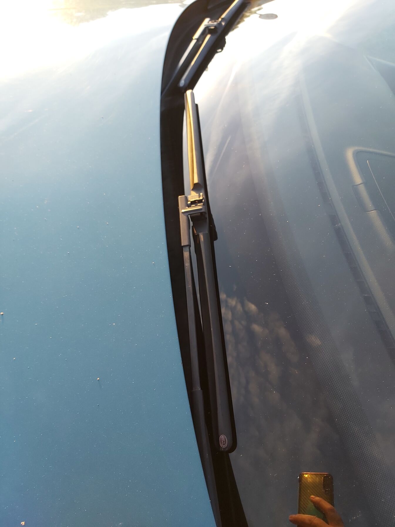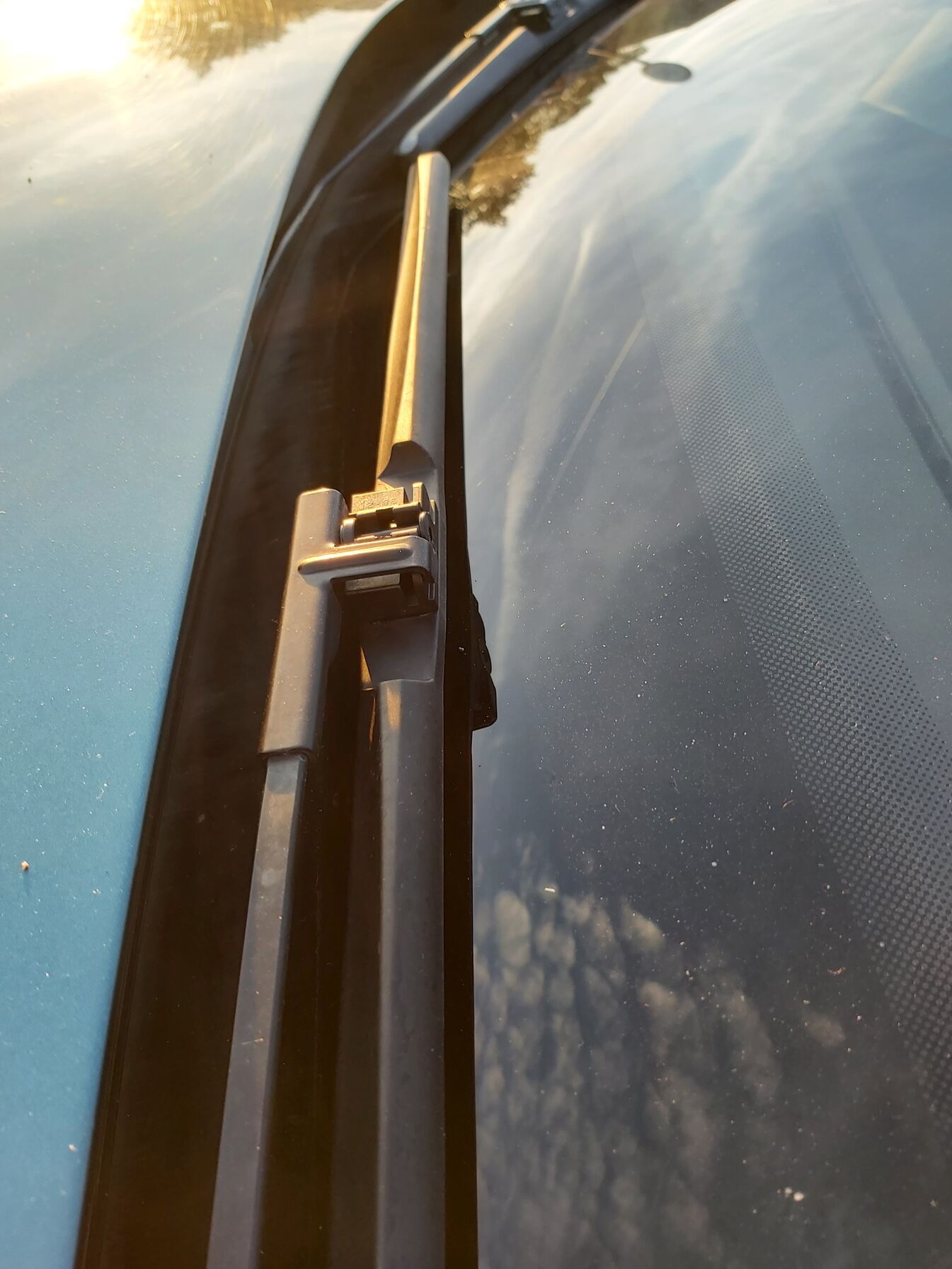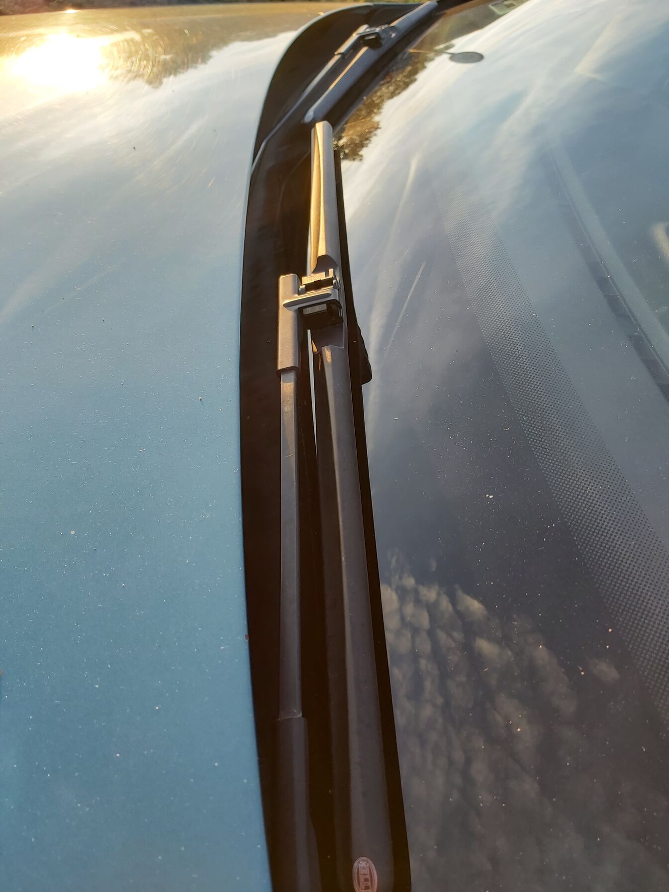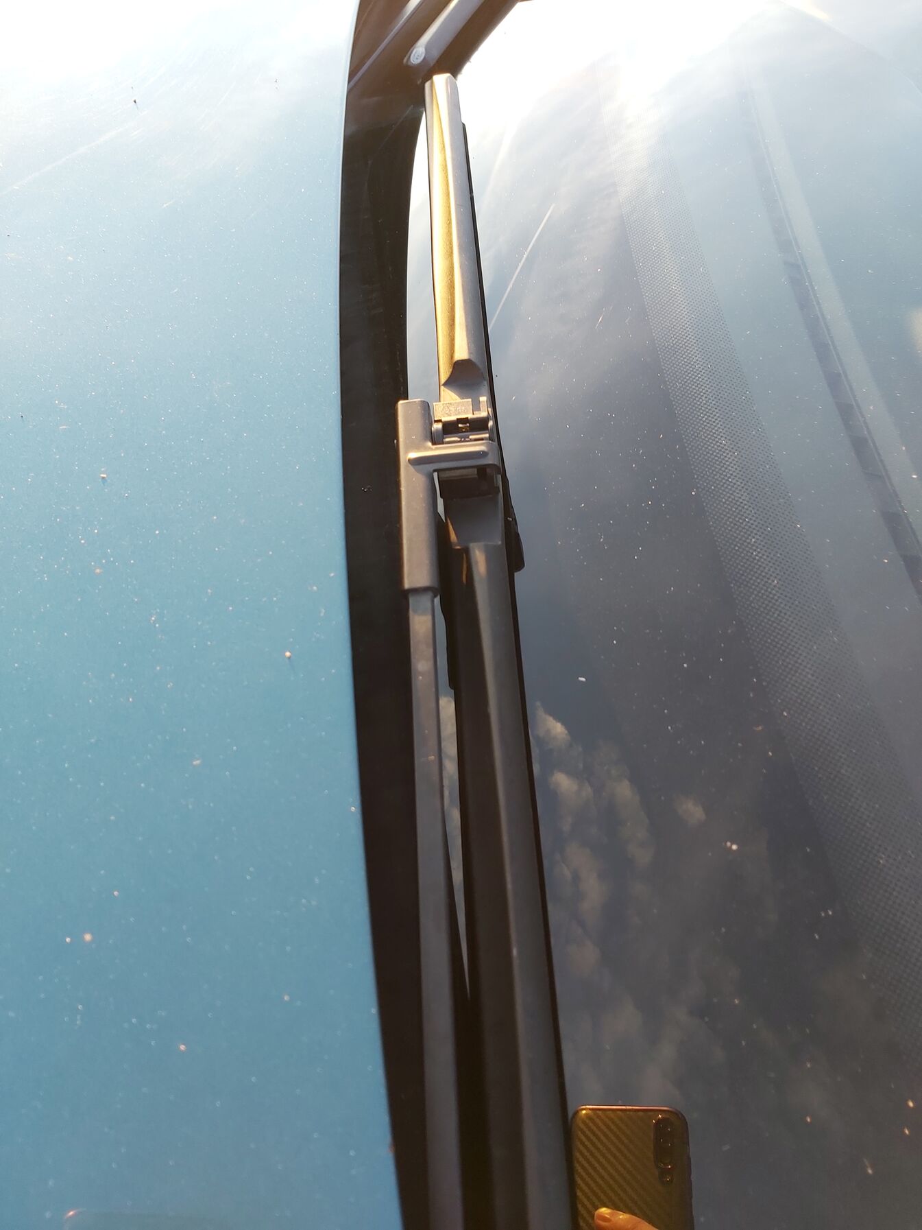Na közben megvolt az ablaktörlő csere és már használtam is a sima egyenest, mert sehogy nem akart lejönni a gyárilag rárakott rögzítő, azzal feszítettem le