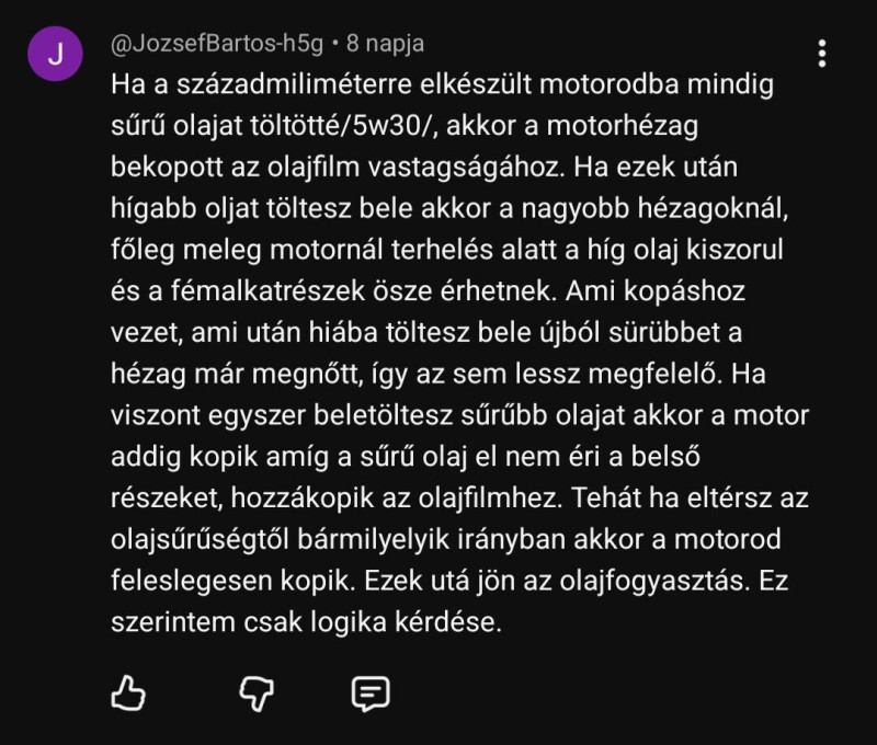 Valahogy hozd ki belőle én nem manipuláltam. A vmp-t azért dobtam be mert mégiscsak házon belüli és a maga műfajában mindkettő a fullos vonalat viszi tehát ideális az összehasonlitáshoz. A suzukinál nincs 0w, de 5w30 van amit majd másfél éve használok. Nincs probléma az olajfogyasztással és mivel a 3.2es hthses motul ami 11 vmennyi cSt 100 fokon, nem fogyott láthatóan, ezért itt se aggódok. 0wtől sem, még, ha egyszerű konstrukció is, akkor is valahol egy kis japán, nem egy moszkvics motor.