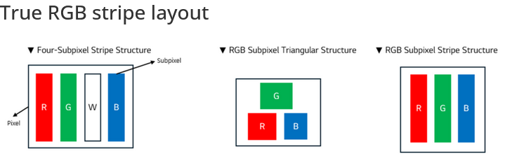 Szellősebben vannak az R G B esetlegesen W alpixelek jelenleg mint, IPS esetében.
