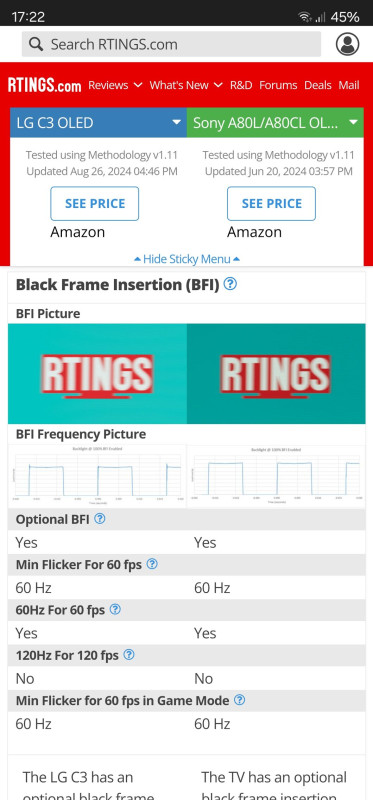 Mindkettő modell 60hz-es bfi-t használ a diagrammok is egybevágóak..nagyobb fenyero miatt lehet esetleg jobban villodzónak látni a c3-at? Vagy?