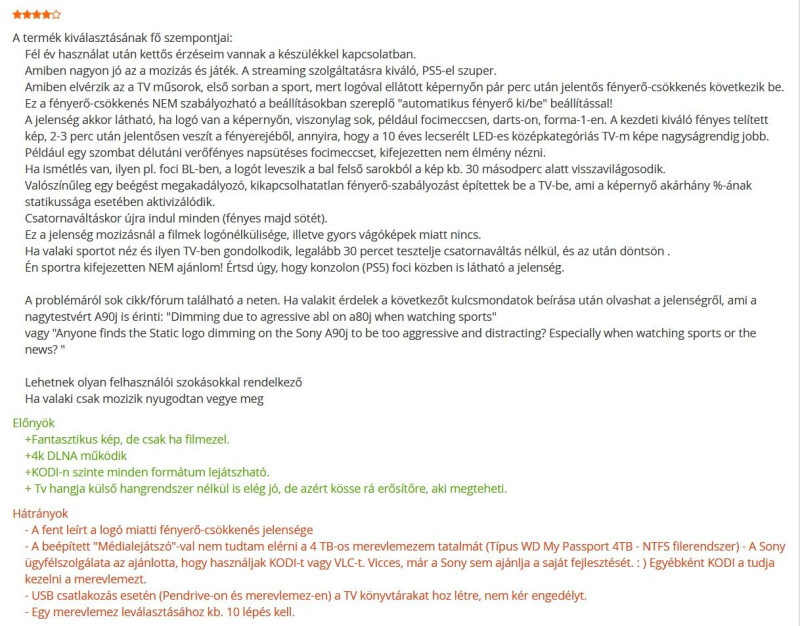 Sony-nál is ez csak akkor észrevehető, ha SDR-ben nagy fényerőt használsz és a 'csúcsfényerő: magas'-ra van állítva. Az viszont igaz, hogy a logó védelem érdekében a Sony-k jobban csökkentik a fényerőt (nem kikapcsolható), mint pl. az LG (kikapcsolható).