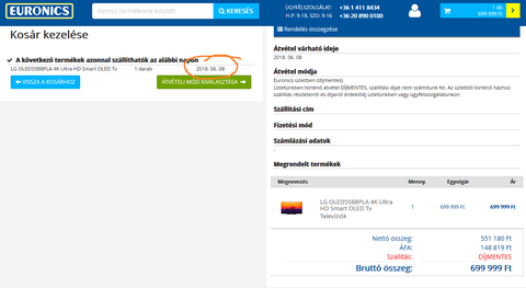 Ja azt nem írtam de cca. 63.ezerrel a MM alá árazott az Euronics és 55-ös a méret.