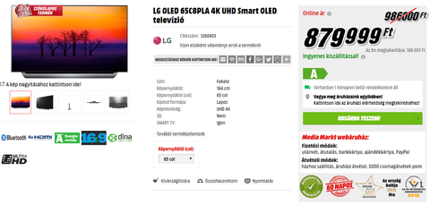 - LG OLED 65G4 - 165cm, 4k - szépséghibás - ÁRON ALUL