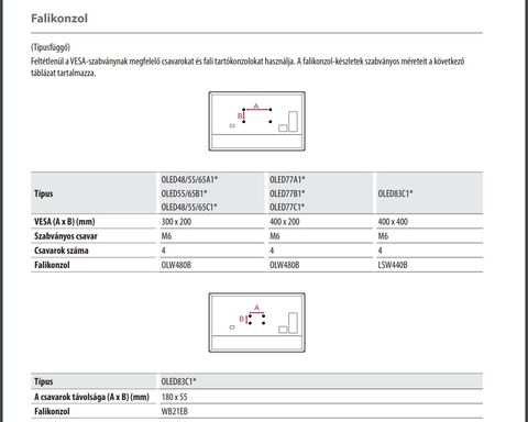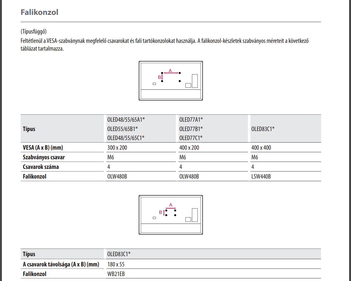LG C1-nek mi a VESA mérete? 400x400? Fura, hogy ilyen adat nincs fent a hivatalos oldalon.