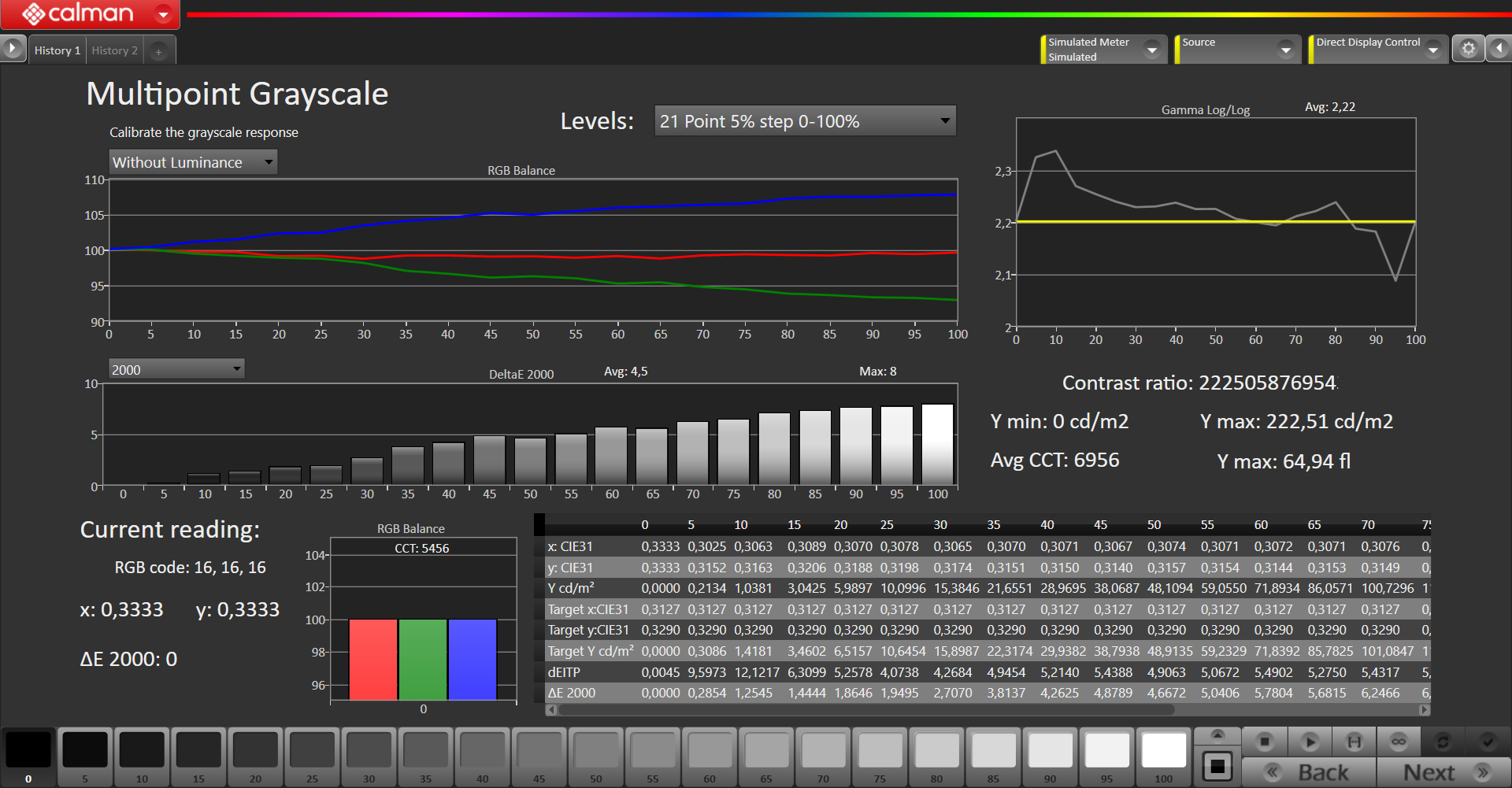 Mint látható az alaplap csere hatalmas kihatással van a gyári kalibráció minőségére, a maximális deltaE eléri a 8-at, míg az átlagos a 4,5-et. A max deltaE egyébként a gyárból kijött modellek esetében 3, nagyon maximum 4 körül szokott mozogni.