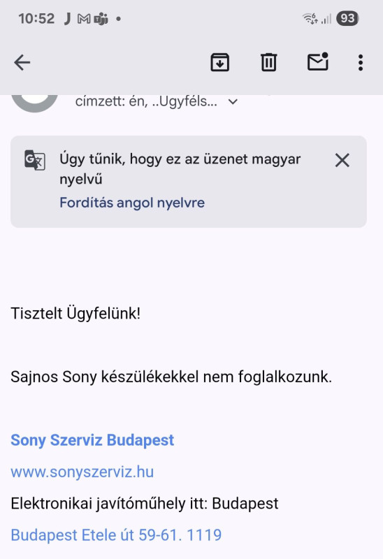 A sony garanciális ügyintézése szégyenteljes. 1 nap elteltével egyik szerviz sem jelzett vissza, még csak annyit sem hogy megkapták az emailt....