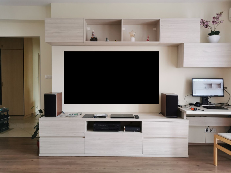 Az egyik a méret, mert tartok tőle, hogy a 77" nagyon leuralja a szobát, túl nagynak tűnik. A nézési távolság kb. 330-360cm lenne.