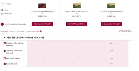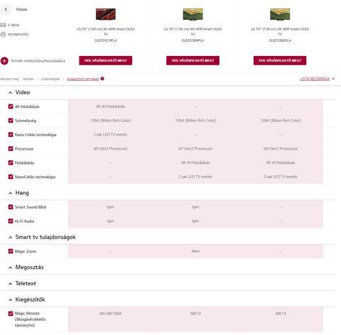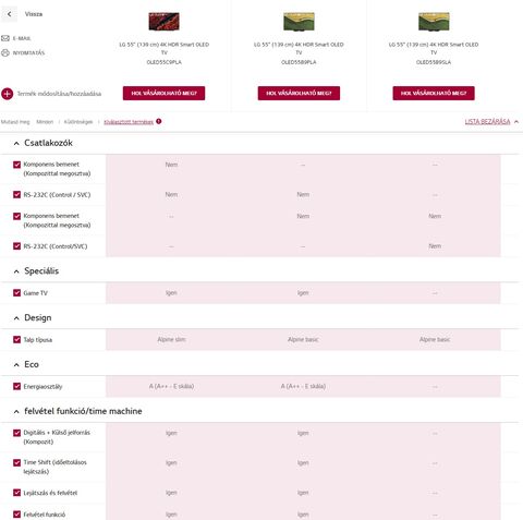 Összehasonlítottam az LG OLED55C9PLA, az LG OLED55B9PLA és az új LG OLED55B9SLA Tv-ket az LG honlapján.