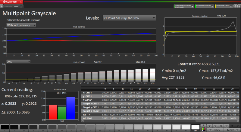 Ahogy lenni szokott a gyári kalibráció borzalom, akár expert akár warm színhőmérésklet mellett van mérve (minden képjavító kikapcsolva)