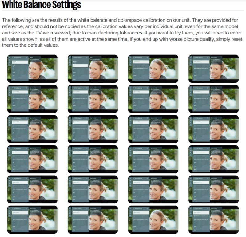 Kérnék egy kis segítséget. Van egy 2025-ös LG C5 OLED tv-m. Szeretném az RTINGS oldal szerint kalibrált értékeket beállítani. Viszont a white balace beállításokat nem tudom értelmezni. Melyik oszlop vagy sor melyik minőségű (SDR, DV, HDR, Game) tartalomhoz tartozik? A többi beállítás egyértelmű.