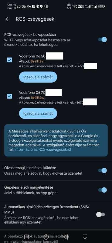 Valamint észrevettem, hogy hiába törlöm ki, minden alkalommal mikor RCS aktiválódik hozzáadja a google accountomhoz a régi hordozott digis és az új ideiglenes telószámot is. Valami itt nem jó, hogy még mindig vmilyen szinten kötődik a régi számhoz a sim. -