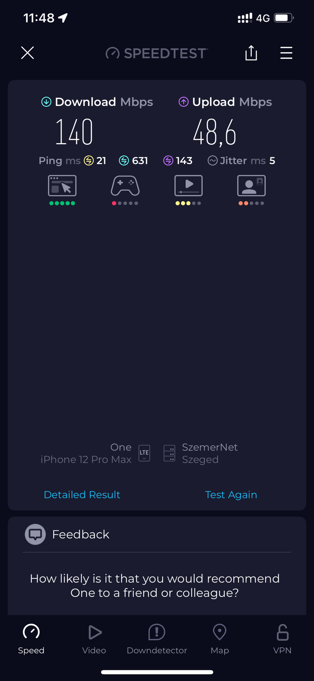 Előfizettem egy hónap yeppre. Ég és föld a onehoz képest. Faluban ahol csak b20 one van, ott van 4g+ és 5g is. Ház sarkában sima 4g 10-20mbit, többi részen 4g+ 80mbit kb udvar 5g 250mbit. Bakonyba falun!