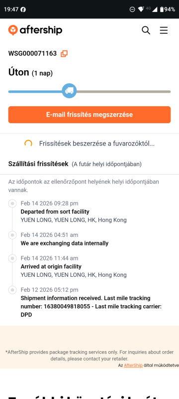 Itt jár jelenleg a telefon. Innen mennyi idő kb mire megkapom?