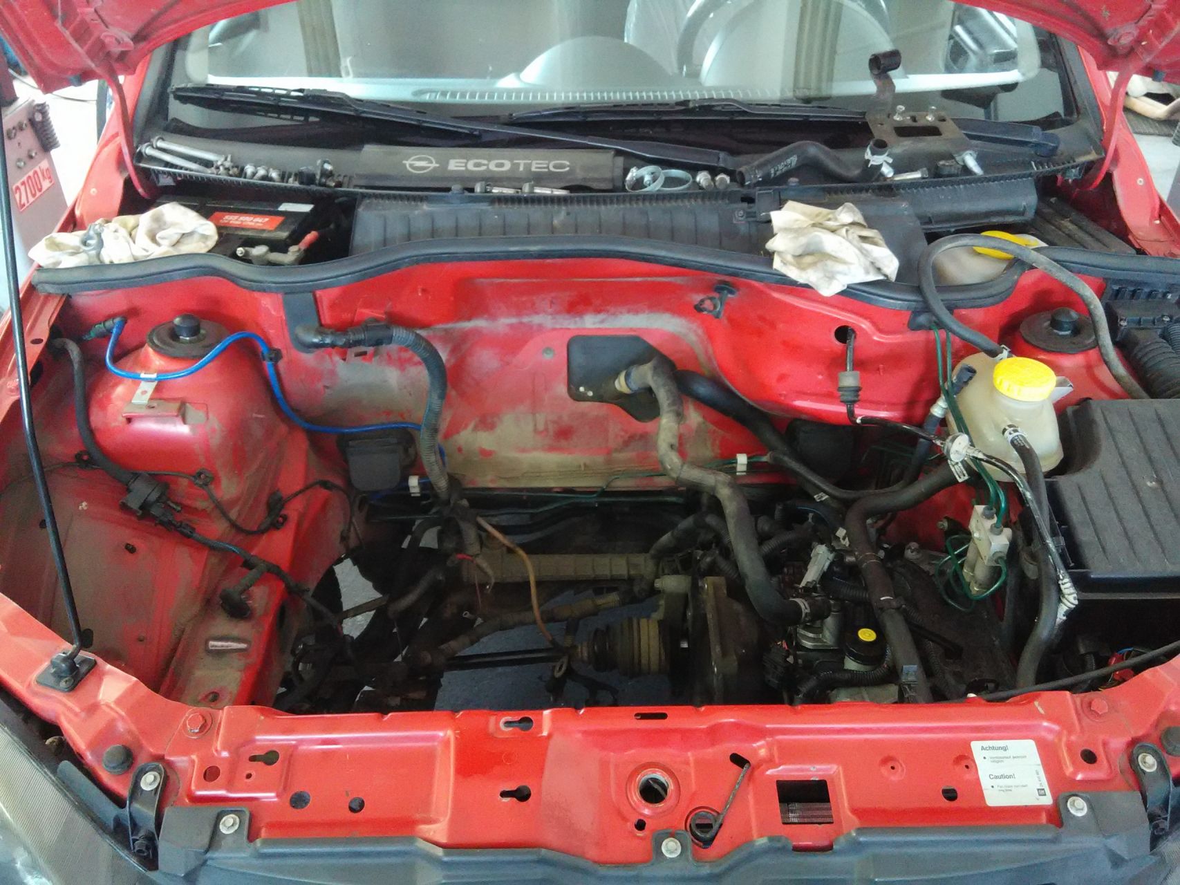 Ma jön a motor, közben hamarabb sikerült szereznem, így nem hívtam fel. Egy Olasz Corsa-ból jön, Dunántúlról, most Pest környékén jár. ~90000 km-t futott motor. Már tegnap meg kellett volna jönnie csak nem bontották ki időben. A mostani motor ott lóg a kocsi mellett láncon