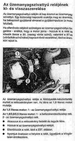 Valóban lehet,hogy a szivattyú nem működik,ellenőrizd le.A szivattyúnak van egy biztije is,nézd meg,jó e,és van egy üa szivattyú reléje is,továbbá van a befecskendező szelepnek is reléje.Ellenőrizd le,hogy működnek e.