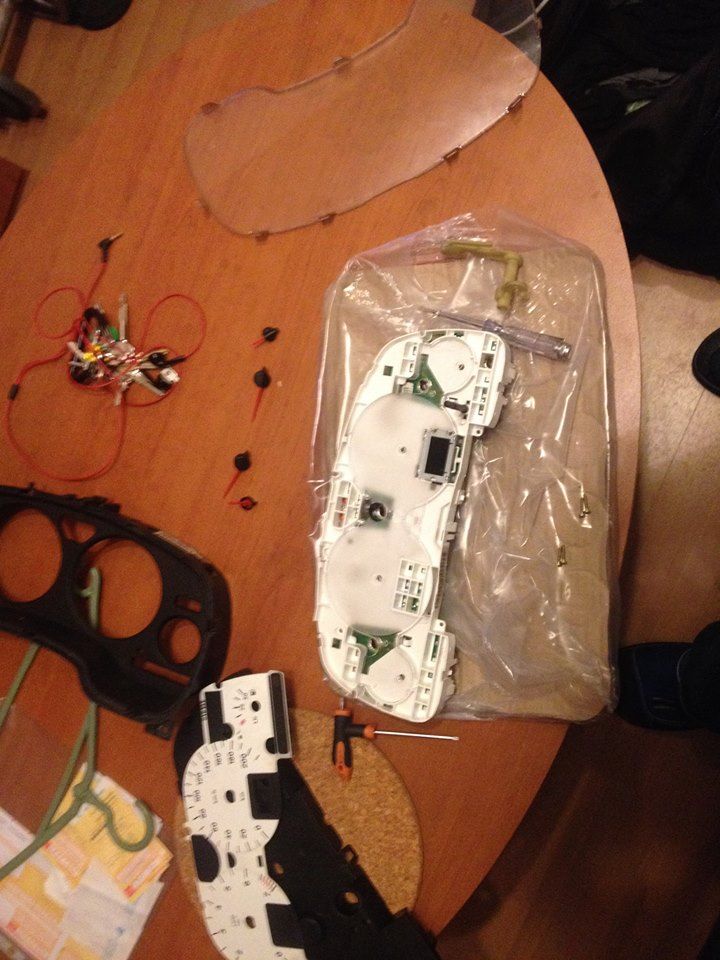 Astra G fehér alapú km órába fehér a prizma,olyan színűen világít a led,amilyen.Viszont vettem egy dizájnosabb fekete hátteres fehér számokkal lévő km órát.Ebbe sárga a prizma,a hideg fehér led zölden világít,most a két órából csinálunk egyet