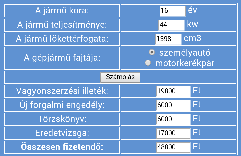 A kalkulátor is az átírás költségei közé számolja az eredetvizsgát. De ettől függetlenül szerintem is a vevő költsége. Minden autónkat így vettük. És az nem kevés darabra se. Számokat meg kell nézni, ha kánya van az a bíróság dolga. Inkasszó vagy bér levonás. Mindent be lehet hajtani vagy így vagy úgy. De nagyon ritkán fordul elő ilyen szerintem.