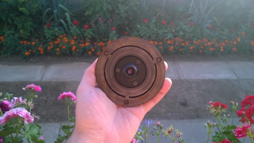 A vicc az hogy bontókban csak komplett klímakompresszort lehet venni, alkatrészt nem. Mindenki azt mondta hogy ami jó azt rakják a polcra, ami nem az meg megy a kukába. Pedig simán eladható lenne róla a kuplung, mágnestekercs, ékszíj tárcsa. Itt az én kuplungom. A gumi rész megolvadt mikor megcsúszott így kuka. -