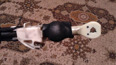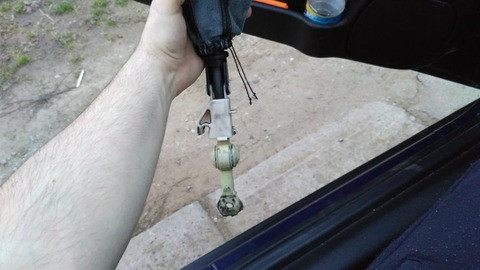 A karon lévő gömb rész csatlakozik a golyósfészekbe, a gömb kopik és lötyögni kezd a váltó. Erre a gömb részre kell zsugorcsövet melegíteni egy vagy két rétegben, kinek mennyire kopott már. Én csak 70mm-es csövet kaptam ami kicsit nagy, nem is olyan szépen feküdt fel a gömb alsó és felső részénél de a célnak megfelelt. Rámelegítés után alaposan be kell kenni lítiumos zsírral és mehet vissza a helyére. Az összeszerelés fordított sorrendben megy. Nekem elég volt egy réteg is mivel elég vastag a zsugorcső.
