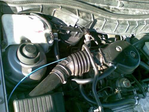 A lecsapatót a vastagabb piros csőbe kell bekötni.Gázadásra a pillangószelep nyit,a szelepfedélből a vastagabb csőből szabad az út a kartergáznak,a légtömegmérő meg adja a friss levegőt. -