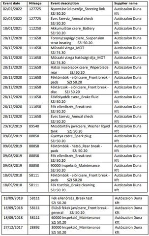 Mivel flottakezelőtől vettem a kocsit 133e km-el így részletesebb infót nem adnak ki, csak az alábbi listát...