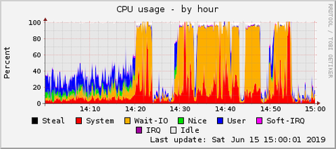 ez így kevés info.. ha hihető a grafikon akkor valami I/O művelettel van elfoglalva. végig kellene nézned a telepített pluginokat és szolgáltatásokat.