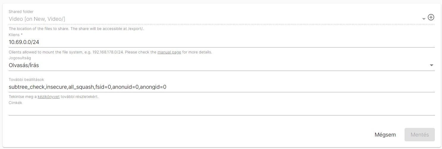 Igazából 4-es OMV-n még használtam az NFS-t, ott működött rendben. Mikor 6-osra váltottam, akkor már nem akart, pedig mindent ugyanúgy állítottam be, mint a 4-esen, de nem akart működni, végül maradtam a Sambánál, végülis megy így is minden. Csak mikor írtad, hogy neked ezzel megoldódott, akkor kiváncsiságból én is kipróbáltam, de 500 Internal server errort dob, mikor érvényesíteni akarom a konfigurációs változásokat, tehát nem tetszik neki valami. -
