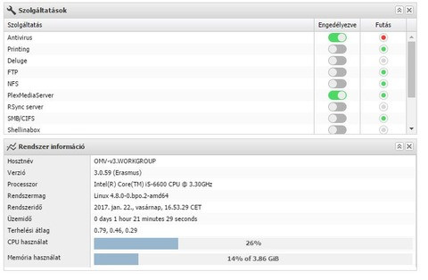 Itt engedélyeztem a Plex tárolót, a Bővítményekből telepítettem, majd a Szolgáltatásoknál engedélyeztem.Ugyanezt megtettem egy teszt céljára telepítette VirtualBox-os OMV-re, frissítés után.