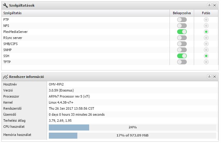Feldobtam a tartalék telefonom 8GB-os mSD-jére egy OMV-t. Majd a szűz telepítést lefrissítettem. A telepítő már alapból tartalmazza az extrákat.