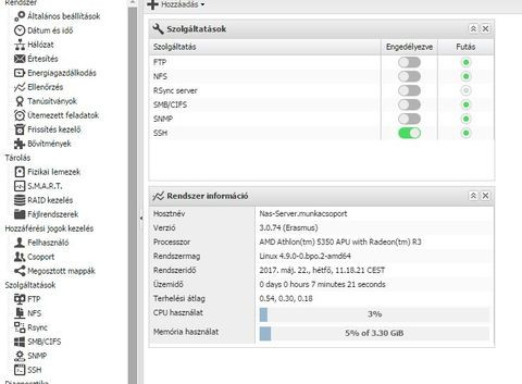 Először arra gondoltam, hogy a háló kártya megadta magát, de fura volt, hogy mind a kettő led egyszerre néha felvillant. Egy régebbi winyót raktam bele és erre telepítettem fel az openmediavault_3.0.74-amd64.iso tökéletesen működik, elérhető.
