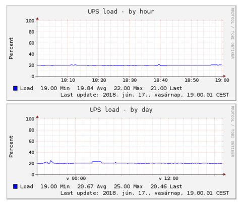 APC UPS CS 350, ez nagyjából 200-210 wattot tud ,éppen elég, 20% körül mozog a terhelése.
