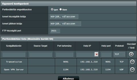 Jelenleg router futtat egy openVPN szervert, de azt lekapcsoltam erre az időre.