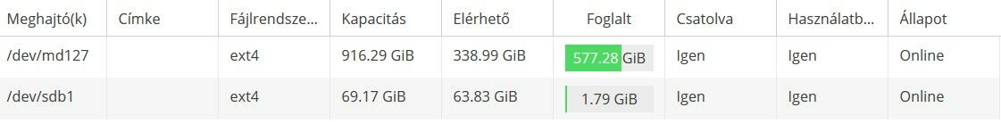 A második /dev/md0-ként szerepelt és a neve szintén omv:0 volt (ezt ajánlotta fel alapból a rendszer - gondolkoztam is, hogy átnevezzem omv:1-re, de végül hagytam).