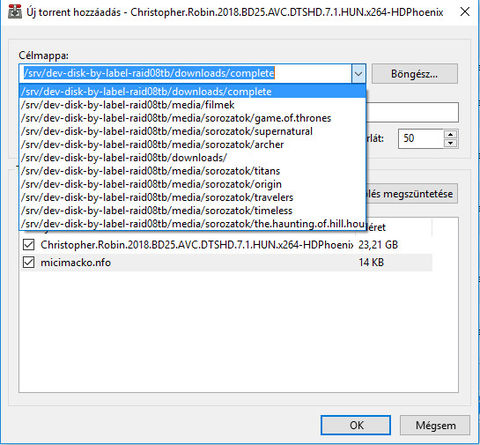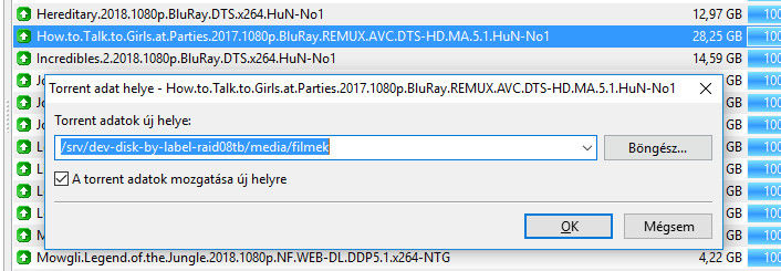 Utólagosan pedig átmozgatni is lehet, másik folderba, ha véletlen rossz helyre tetted volna. Ehhez kijelölöd a mozgatandó torrentet, és az F6-ot megynomod. Azért jó, mert így mozgatva, a torrent továbbra is aktív marad, tehát, nem fogja utólag keresni, mert el lett mozgatva.hope this help