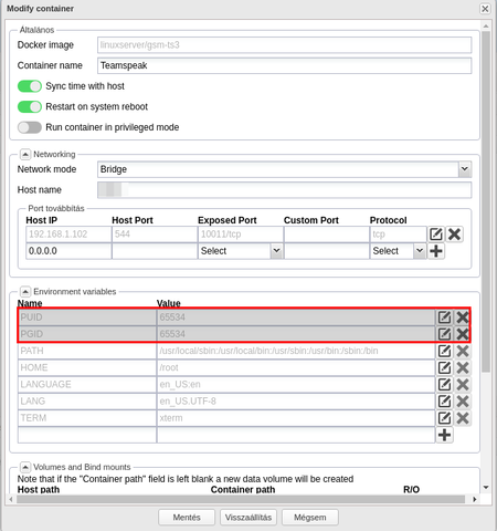 https://www.youtube.com/watch?v=GsxSou-0srsItt a PGID és PUID -t is be tudja állítani, mert freenasban létre tud hozni ID-vel csoportot és felhasználót is és van mit bemásolnia ahova kell. OMV alatt hiába hozok létre új felhasználót, pl TS néven, nem tudom megnézni az ID-t, mert nincs (vagy nem tudok róla) így azt hagytam alapon: 65534